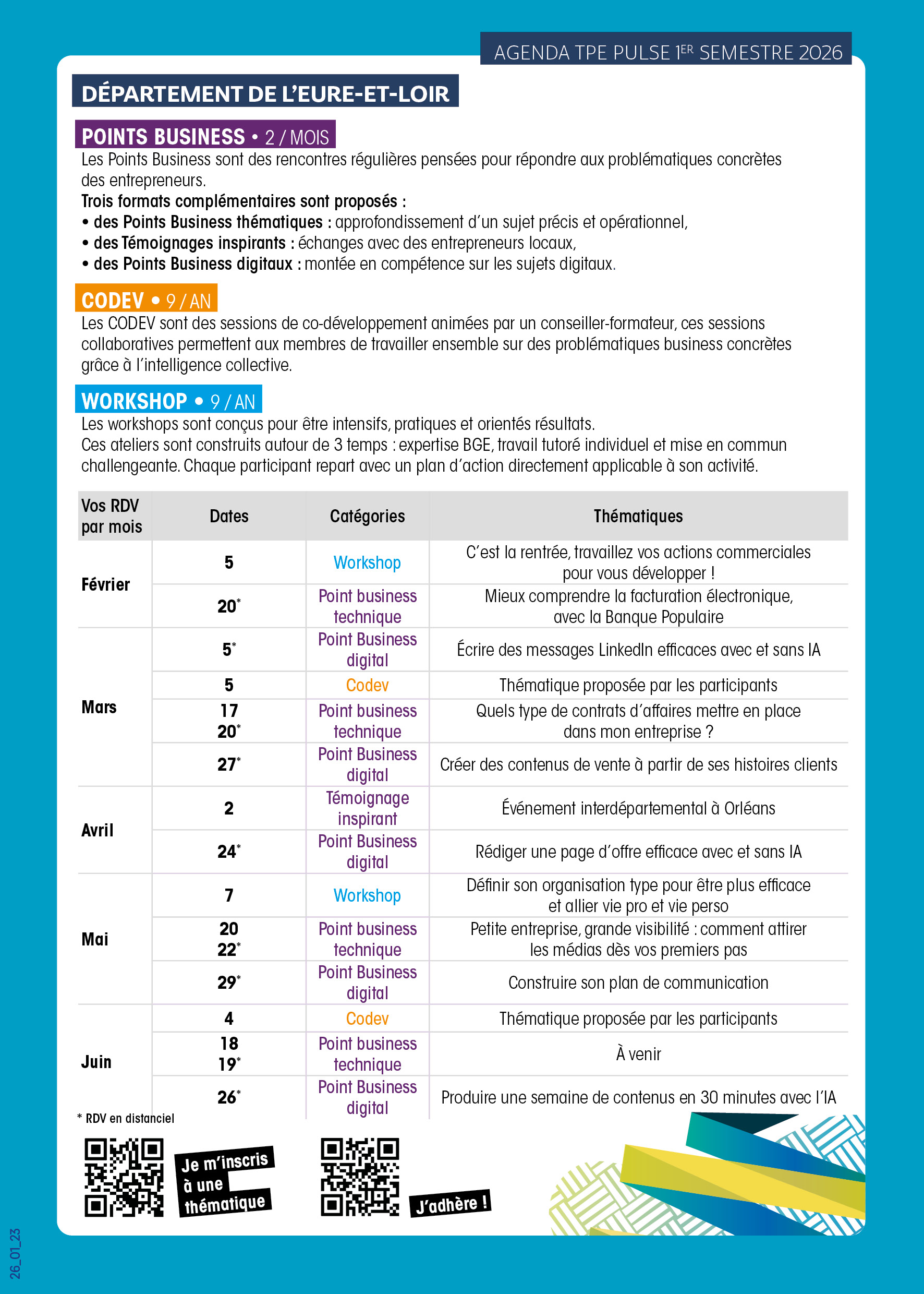 Les dirigeants de TPE et entrepreneurs doivent souvent tout gérer : communication, stratégie, commercial, numérique… Pour vous accompagner, nous proposons une programmation riche, pratique et directement applicable, conçue pour les entrepreneurs et porteurs de projet des villes du Centre-Val de Loire.